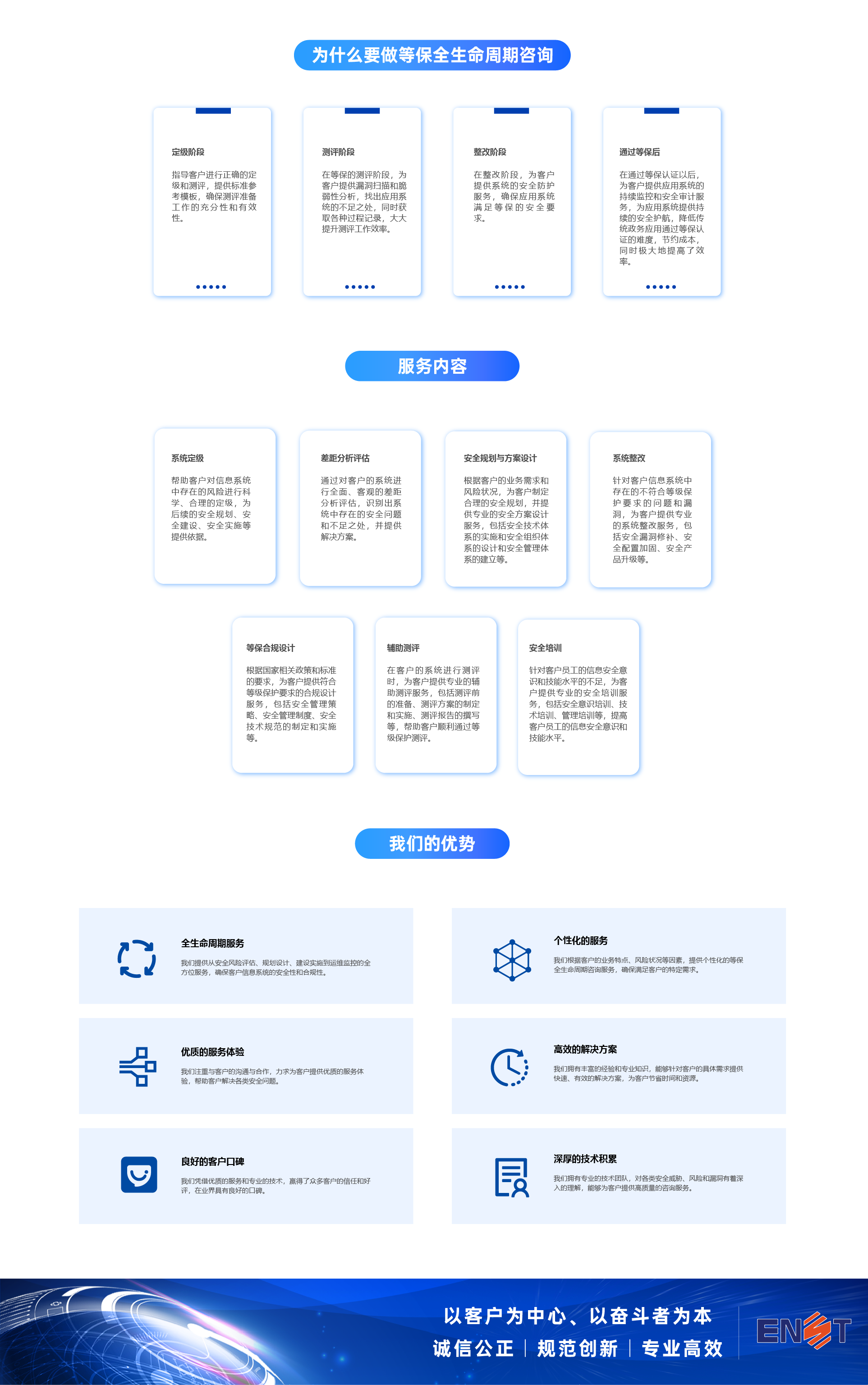 等保全生命周期咨询服务是指为实施等级保护的信息系统提供全生命周期的第三方服务。