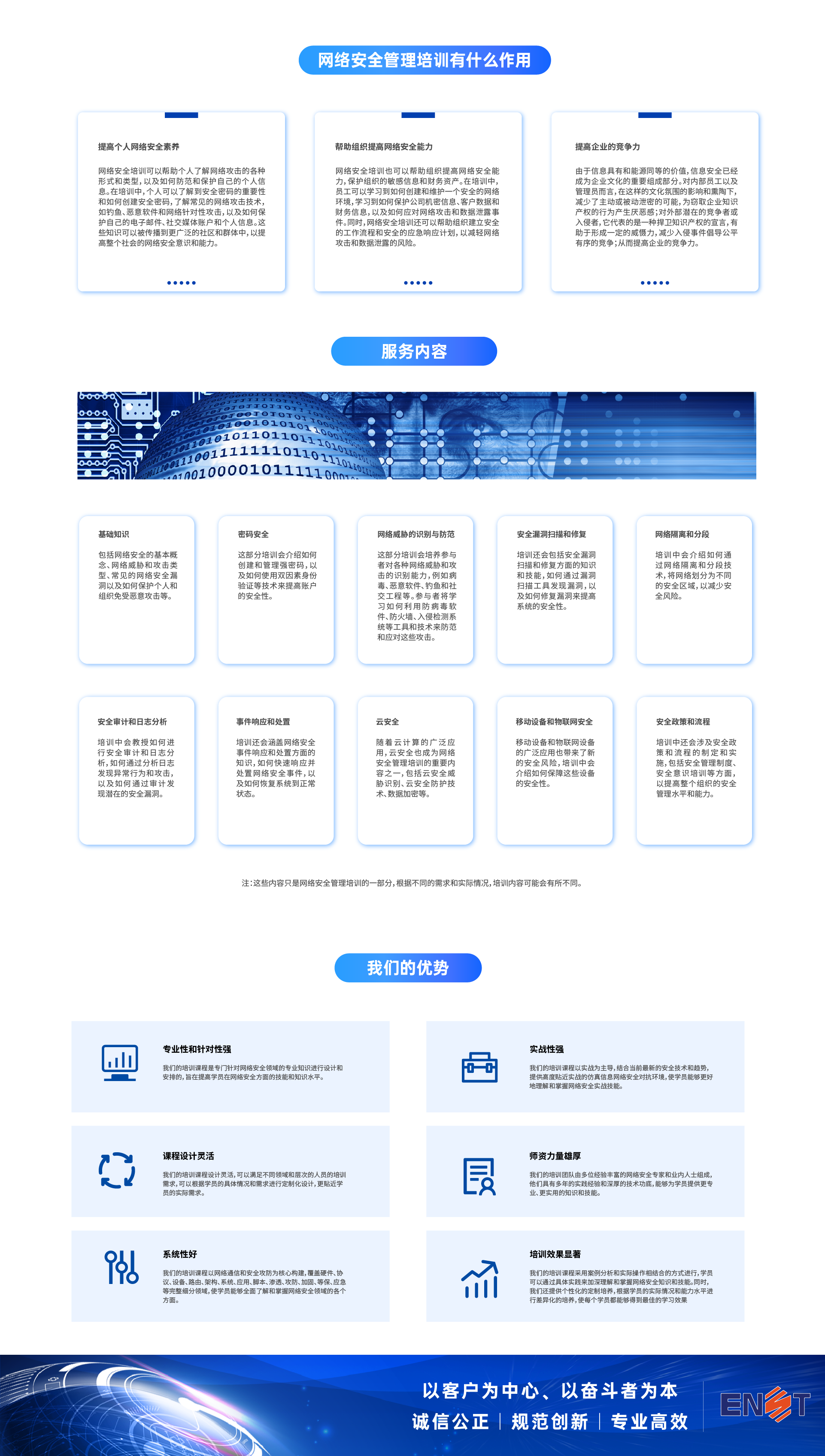 网络安全管理培训是指为了提高个人或组织在网络安全方面的技能和知识,使其能够更好地保护自己的网络资产而进行的一种培训活动。这种培训通常涉及与网络安全相关的各个方面,例如网络安全的定义、常见的网络攻击和威胁、密码学基础、防火墙的配置和使用、入侵检测系统的部署、数据备份和恢复、社交工程和网络钓鱼的防范等。